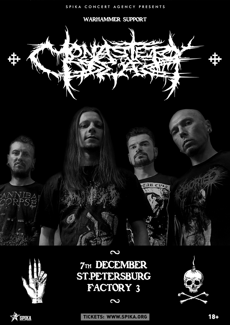 Monastery Dead is a death metal band of Russian origin formed in 2004 by Vadim Nikolaev. For today the band has four albums, three singles and two official music videos. Since the day of its foundation Monastery Dead performs gigs countrywide and abroad sharing the stage with such monsters as Haemorrhage, Dying Fetus, Fleshless, Amagortis, Debauchery and many others.